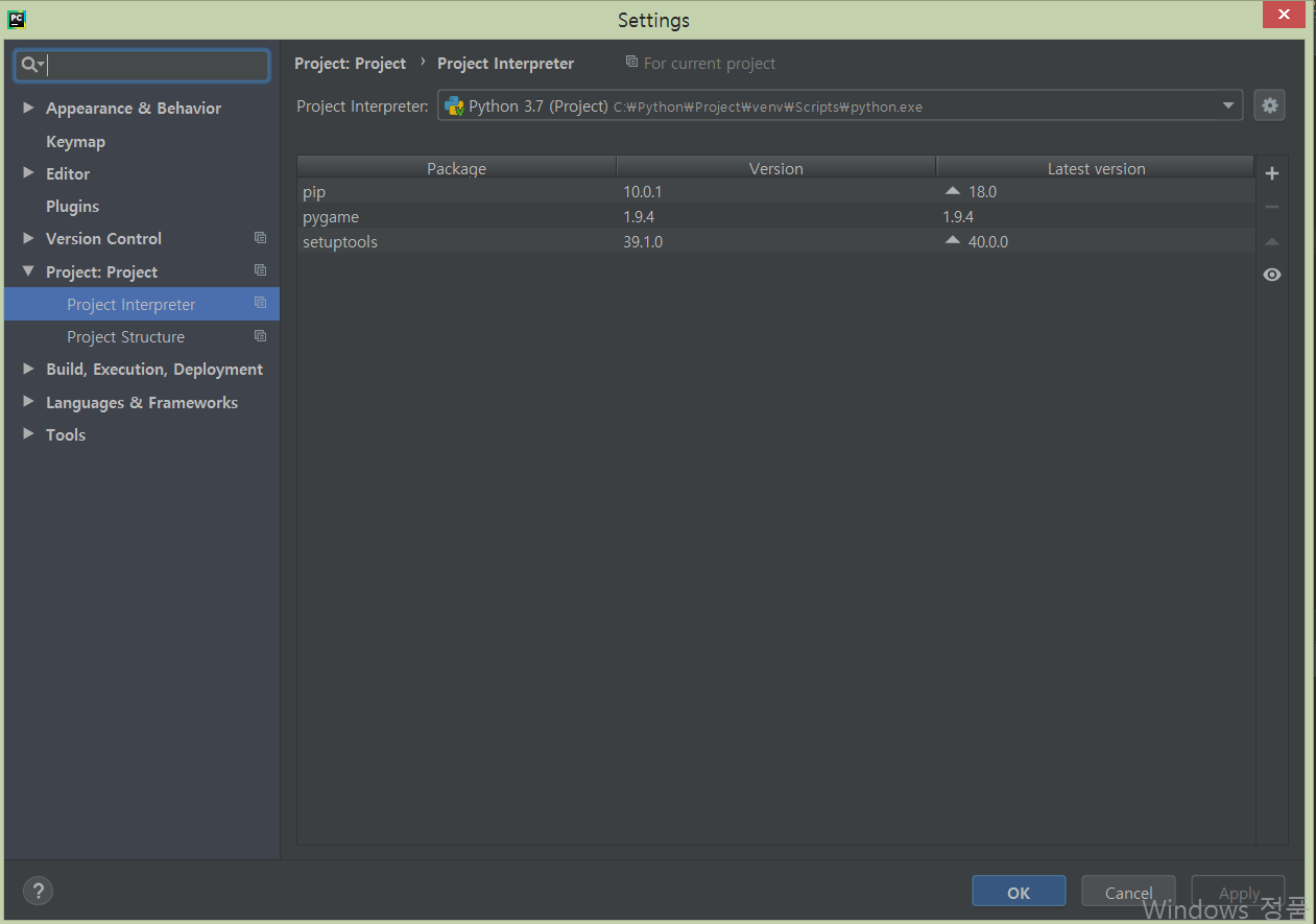 • c:\Python\Python37\에 pygame‑1.9.4‑cp37‑cp37m‑win_amd64.whl 파일을 저장합니다.